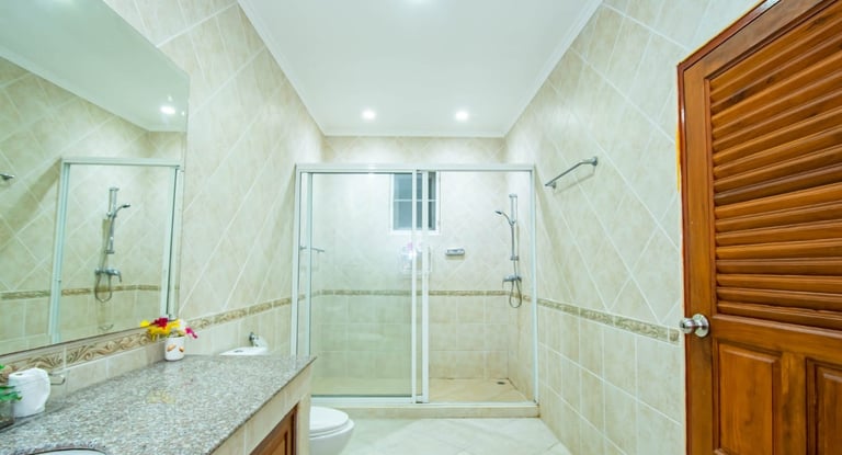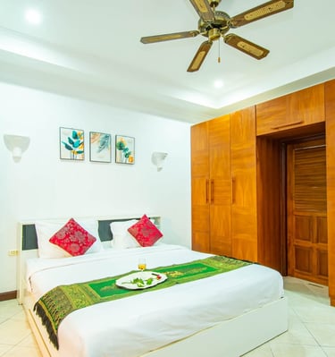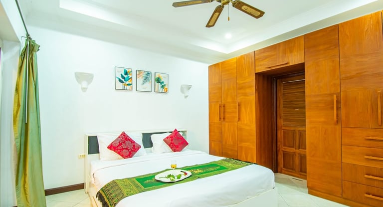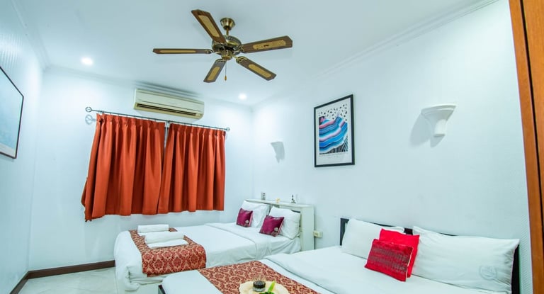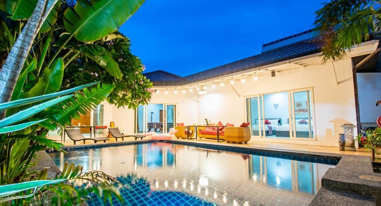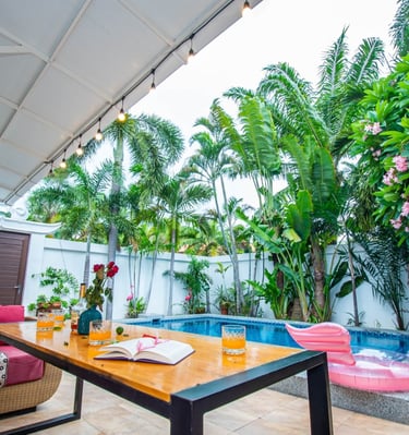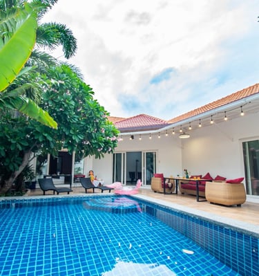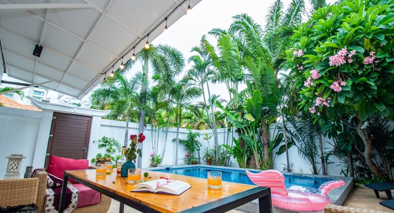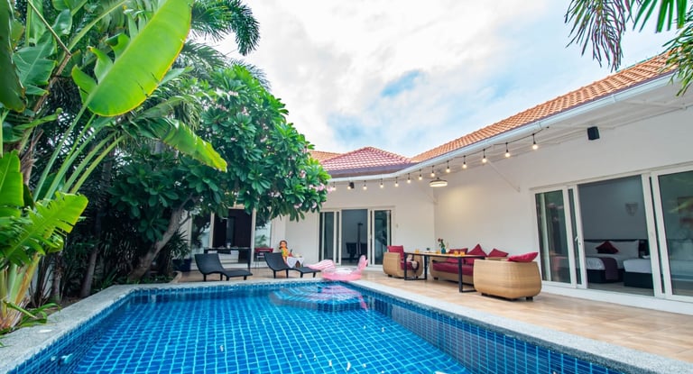 Flamingo Pool Villa is a spacious 3-bedroom private pool villa in Pattaya, perfect for group holidays, celebrations, and friends traveling together. Each bedroom features an ensuite bathroom, offering privacy and comfort for all guests.